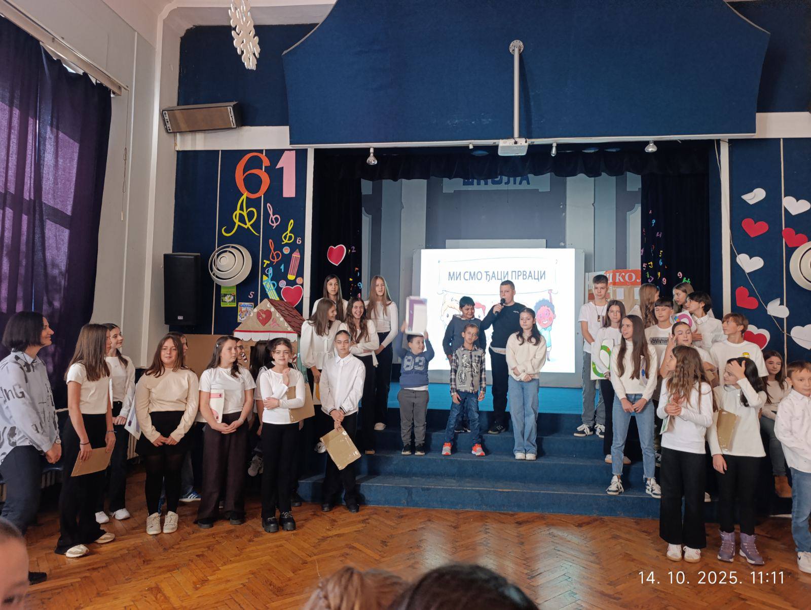 Добродошлица и пријем првака у Пријатеље деце Звездара, обележена је приредбом у којој су учествовали ученици наше школе и ученици ОШ „Марија Бурсаћ“, који нам већ низ година уназад пружају подршку и улепшавају дружења и школске приредбе. Драгим првацима желимо лепе и срећне школске дане у нашој школи!