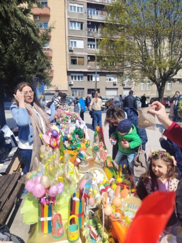 На Врбицу, 4. априла 2026. године, традиционално смо учествовали у продајној изложби васкршњих радова испред храма Светог Саве. У празничној и радосној атмосфери представили смо радове ученика наше школе, који су уз подршку својих наставника на креативан и маштовит начин израдили бројне декорације са васкршњим мотивима. Ова активност имала је посебан значај, јер је ученицима омогућила да изразе своју креативност, развијајући притом осећај самопоуздања и личне вредности. Кроз процес израде радова подстицана је њихова самосталност, доношење одлука и иницијатива, у складу са индивидуалним могућностима сваког детета. Учешћем у изложби ученици су имали прилику да се укључе у ширу друштвену заједницу. Посебан акценат стављен је на стварање подстицајног и подржавајућег окружења, у коме се негују креативност, сарадња и осећај припадности.